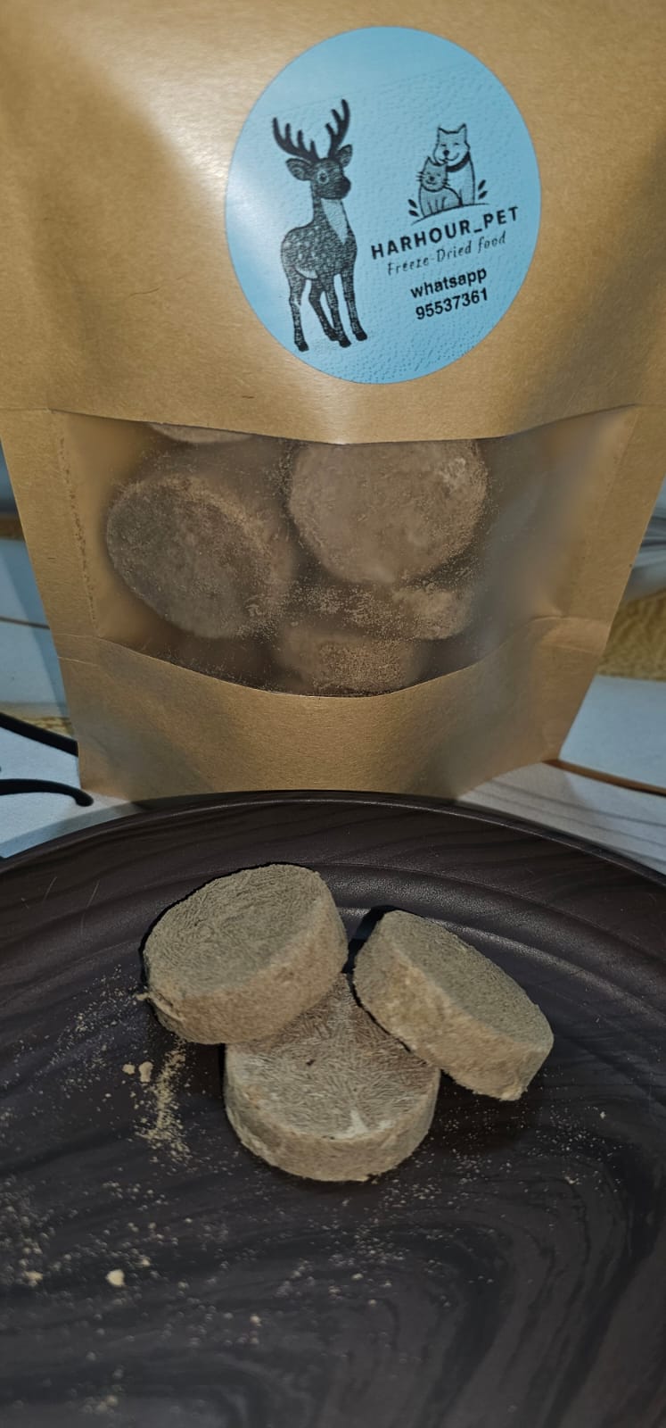 باتيه الغزال المجفف بالتجميد مزيج مغذي من لحم الغزال الطري، صفار البيض، القلوب والقوانص لتقديم وجبة طبيعية غنية بالطاقة.