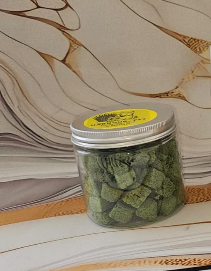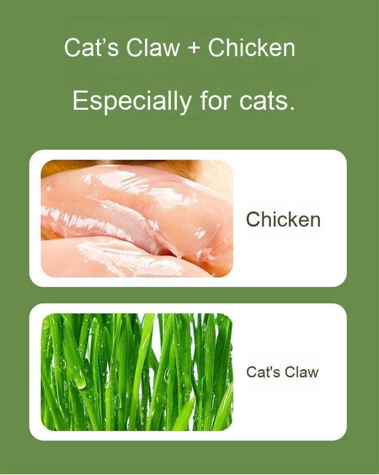 تريت عشب القط المجفف مصنوع من صدور دجاج طبيعية وعشب القط الطازج لتغذية صحية ومتوازنة.